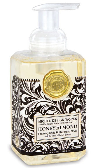 For this irresistible honey almond hand soap, we muddled the scents of toasted almonds, sweet cherries and vanilla with a touch of honey. The result is a luxurious Honey Almond Foaming Hand Soap that leaves hands soft and moisturized from the mixture of rich shea butter and aloe vera. We’re positive you’ll love the delicate sweetness, generous size and beautiful design of our honey hand soap in your home.